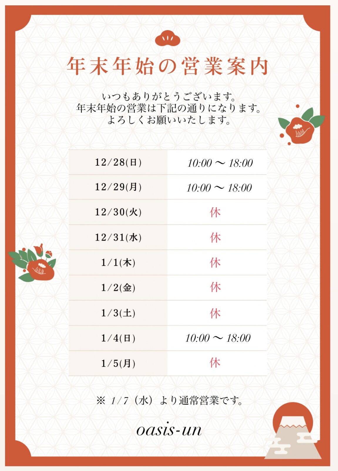 年末年始のご案内💇🏻♀️