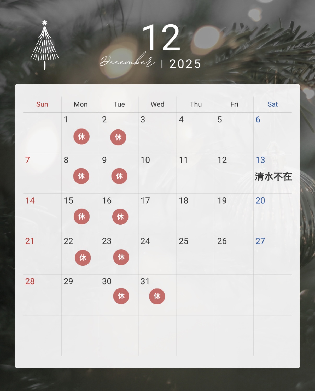 年内の営業カレンダー⛄️